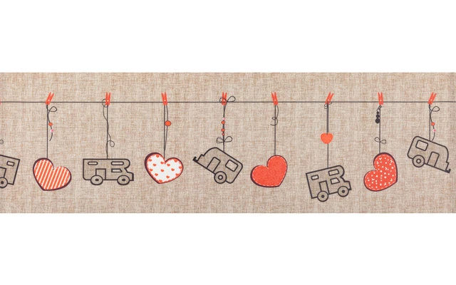 Für den Innenbereich im Camping-Dessin. Kann mittels Schere individuell zugeschnitten werden. Der Teppich ist waschbar bei 30° C.