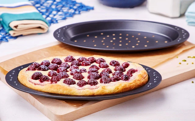 Mit diesen hochwertig antihaftbeschichteten Ofenschalen „GRETA“, 2-tlg. (Maße = ca. 30,0 x 17,0 x 2,0 cm) mit Thermolochung gelingt Ihnen nahezu jede Ofenkreation, ob süß oder herzhaft: Leckere Pizza, knuspriges Fleisch, frisches Gemüse, Focaccia, Kuchen u.v.m.