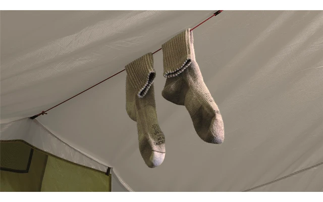 - Außenzelt: HydroTex HD RS, 75D Polyester 190T, Ripstop, feuerhemmend, 100% Polyester